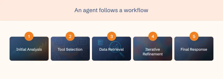 When a user submits a query, our agent follows this workflow: