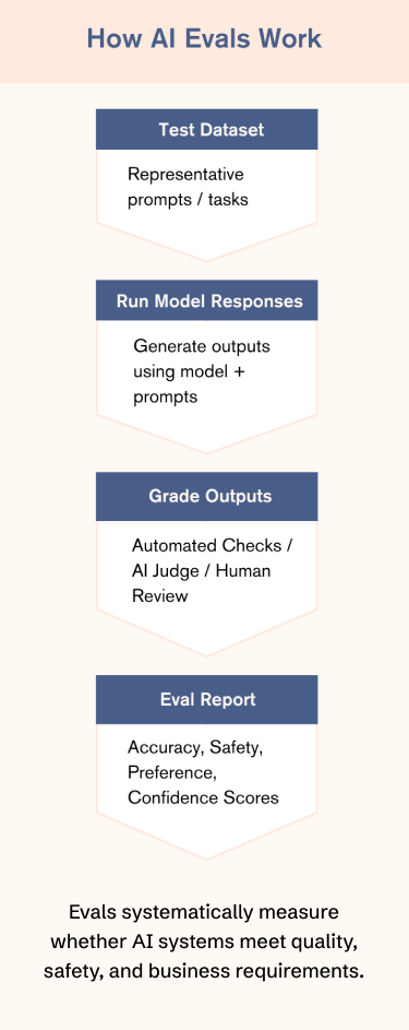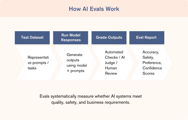 Evals are the bridge between research metrics and production readiness. They transform vague questions (“Is this model good?”) into measurable, reproducible, and auditable answers (“Under these specific conditions, the model achieves X performance with Y confidence”).