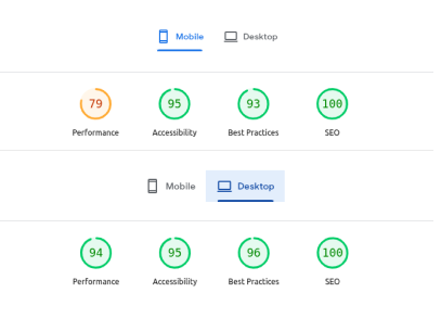 Despite heavy visuals, achieved speed scores of 70–75 (mobile) and 90–95 (desktop) through lightweight code, compressed video, and efficient animations.