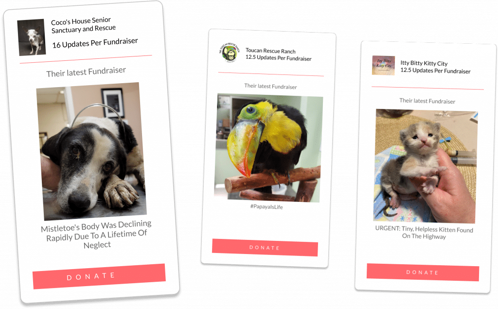 CUDDLY enables animal rescues to create fundraisers and gifting wishlists to support animals in their care.